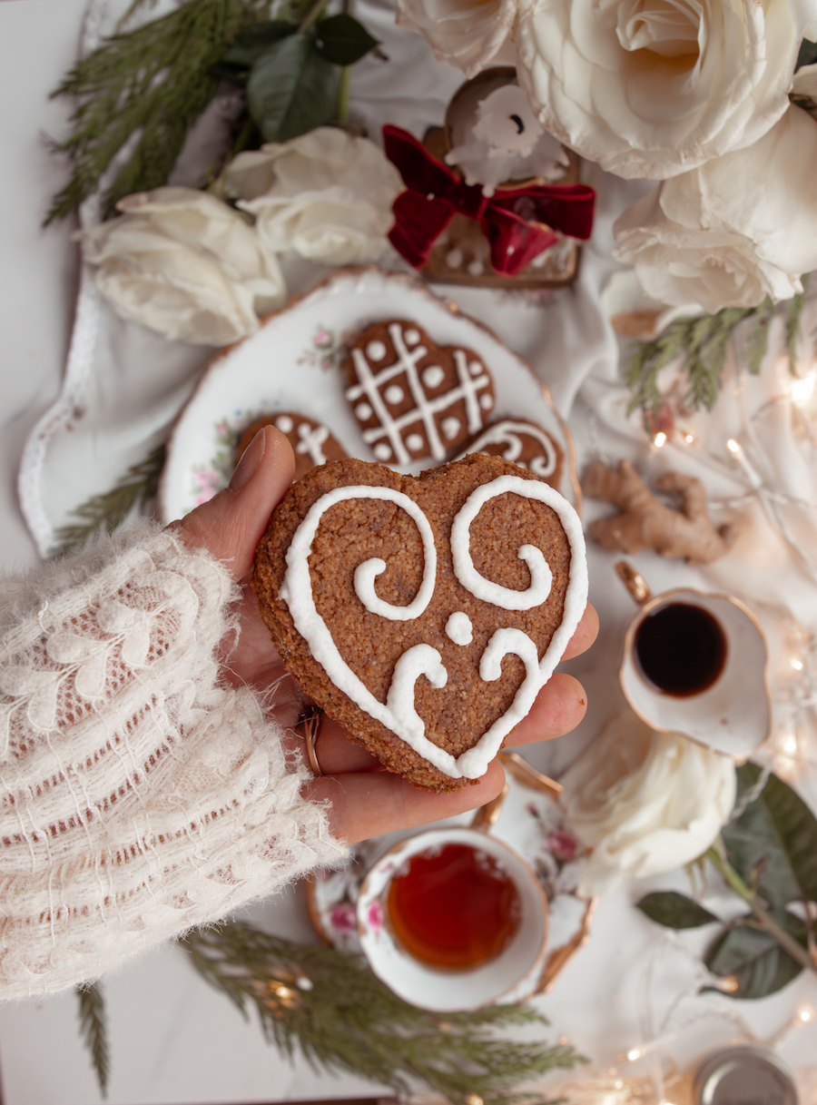 These Elegant Gingerbread Heart Cookies are a blissful union of spice, warmth, and intention. Infused with fresh ginger, almond butter, and deep holiday spices, they bake into a chewy, fragrant cookie perfect for dipping into warm milky tea. Completely grain-free, gluten-free, and sugar-free, they offer guilt-free joy for your December traditions.
