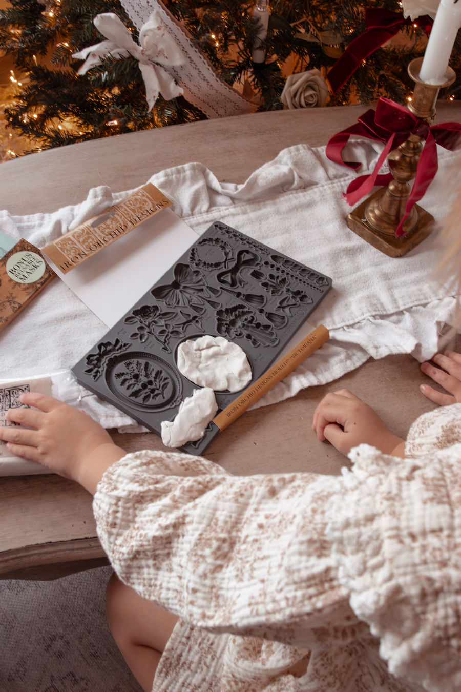 Handmade ornaments, clay mould embellishments, stamped keepsakes, and crafted bows become heirlooms in the making. These are the pieces your children will remember — not because they were perfect, but because they were made together.